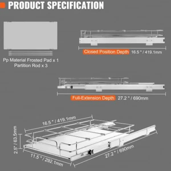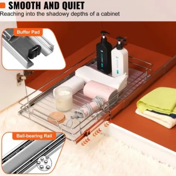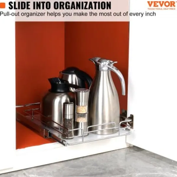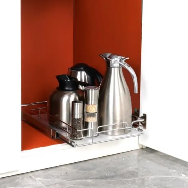 Maksimer dit skabsplads og hold dit køkken eller badeværelse organiseret med denne kraftige udtrækkelige skabsorganisator. Designet til jævn og lydløs udtrækning gør denne krombelagte stålhylde det nemt at få adgang til gryder, pander, rengøringsmidler og andre nødvendigheder, samtidig med at den sikrer holdbarhed og nem vedligeholdelse. Dens alsidige design passer til forskellige skabstyper og er let at installere, hvilket gør den til en praktisk opbevaringsløsning til ethvert hjem.