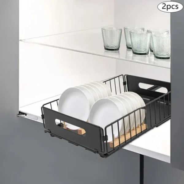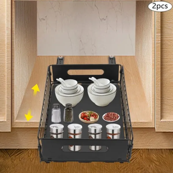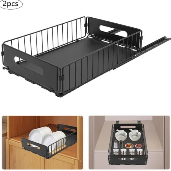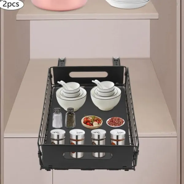 Udtrækkelig skabsorganisator – 2 stk. i sort til effektiv opbevaringFå styr på køkken- eller badeværelsesskabe med to separate, udtrækkelige kurve. Den moderne løsning i kulstofstål med varmbagt lak giver høj holdbarhed, nem adgang og en ryddelig indretning.