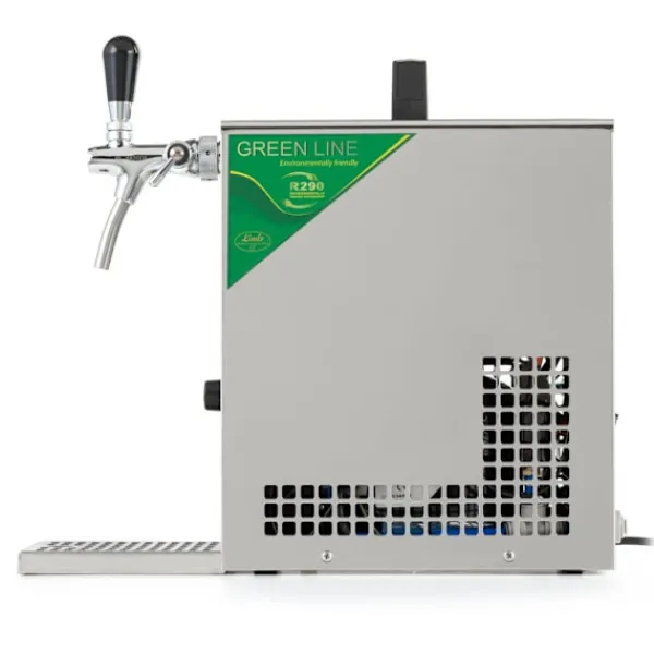 Fadølsanlæg, Øldispenser – Komplet sæt PYGMY 20/K med membranpumpe, 1-linjes tørkøler i rustfrit stål, 25 l/h, med doseringssøjle, Green Line Det komplette underdisksæt er den ideelle løsning til at hælde øl direkte fra baren. PYGMY 20/K tørølskølesystemet med membranpumpe og rustfrit stålhus garanterer perfekt kold øl med en flowhastighed på 25 liter i timen, justerbar fra +3 til +10°C. Green Line-systemet garanterer, at du rejser med respekt for miljøet. Klar til brug på 2-4 minutter Takket være den hurtige idriftsættelse af PYGMY 20/K øldispenseringssystemet med membranpumpe er du klar til brug på få minutter og kan servere frisk, kølet øl til dine gæster. Effektiv tørkølingsteknologi 1-linje tørkøling sikrer, at våd is ikke er nødvendig, og du får altid en perfekt kold øl. Tørkøleren er lavet af rustfrit stål, den er nem at rengøre, smuk og meget holdbar. Med 45 % mere effektiv køleteknologi sparer du også energi og reducerer driftsomkostningerne. Miljøvenlig takket være Green Line Med Green Line-systemet kan du rejse med respekt for miljøet. Dette certificerede system har lavere energiforbrug og bedre kølemiddel (R290) end konventionelle systemer. Du kan derfor bruge din ølhane med fuld ro i sindet, mens du gør noget for miljøet. Mere kraftfuld og mere miljøvenlig takket være den nyeste model Den nye PYGMY 20/K ølhanemodel er endnu mere effektiv og miljøvenlig end den tidligere model. Takket være en kraftigere kompressor og forbedret kølevæske er systemet 15 % mere effektivt og opfylder allerede 2021 europæiske regler. Alt er inkluderet for en vellykket service Det komplette sæt indeholder alt, hvad du har brug for til vellykket tapping, inklusive en tappesøjle, renseadapter, ølrør og tappehoveder efter eget valg. Sættet er hurtigt og nemt at installere og giver dig alt, hvad du behøver for at komme i gang med det samme. Mange tekniske fordele •Trykket i cylinderen skabes af membranpumpen •Inkluderer drypbakke i rustfrit stål •Inkluderer efterkølingskompensationsventil •Nettilslutning 334 watt/230 V/50 Hz, 1,45 A •Links: John Guest •Mål: B/D/H 170/280/325 mm •Vægt: 15,5 kg Nem at rengøre og vedligeholde Takket være huset i rustfrit stål og tør afkøling er PYGMY 20/K ølhanen særdeles nem at rengøre og vedligeholde. Efterafkølingskompensationshanen er også særlig nem at rengøre, hvilket sparer en masse tid og kræfter. Perfekt til små til mellemstore begivenheder Takket være dens flowhastighed på 25 liter i timen er det komplette underbordssæt ideelt til små og mellemstore begivenheder, såsom fødselsdage, familiefester eller grillfester. Med PYGMY 20/K ølhanen kan du hurtigt og nemt servere den frisk fadøl, dine gæster forventer. Konsekvent lave driftsomkostninger Med PYGMY 20/K ølhanen kan du ikke kun spare tid og kræfter, men også reducere driftsomkostningerne. Takket være kraftfuld teknologi, effektiv køling og Green Line-økosystemet er driftsomkostningerne meget overkommelige.