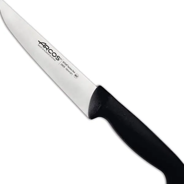 Producentens kode: 290525 2900-serien kombinerer ergonomi, styrke og enkelhed, hvilket sikrer langvarig og behagelig brug. Kniven er lavet i Spanien. Bladene er lavet af valset metalplade – innovativt, martensitisk NITRUM® rustfrit stål med øget hårdhed og korrosionsbestandighed. Håndtagene er lavet af polypropylen, som sprøjtes direkte på stiften, hvilket øger holdbarheden af forbindelsen. Overfladen på håndtagene er struktureret og meget ru, hvilket forhindrer den i at glide ud af din hånd (anti-slip). Håndtagene har en BACTIPROOF SILVER® belægning for at reducere ophobningen af bakterier til et minimum. Det har øget modstand mod høje temperaturer. Kniven tåler ikke opvaskemaskine. Produktegenskaber: – Fremstillet i Spanien, – Klinge lavet af valset metalplade, – Innovativt NITRUM® rustfrit stål, – Antibakteriel belægning på håndtaget, – Høj klingehårdhed, øget korrosionsbestandighed, – NSF-certificeret. Tekniske parametre: – Produktnummer – 290525 – Artikeltilstand – Ny – Mærke – Arcos – Håndtagslængde (mm) – 132 – Længde (mm) – 335 – Bladlængde (mm) – 150 – Farve – sort – Tykkelse (mm) – 1,5 – Bredde (mm) – 27 – Hårdhed – ca. 55HRC Inkluderet: – Køkkenkniv