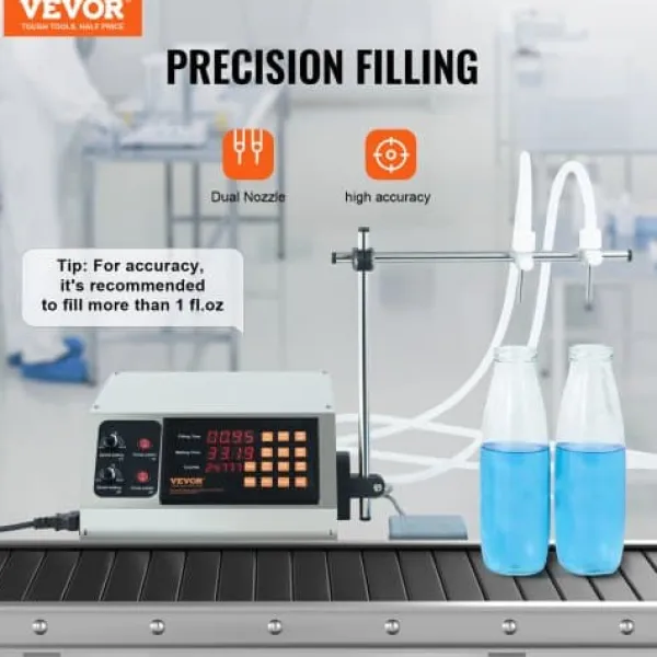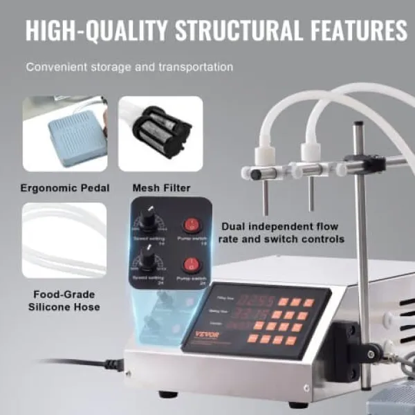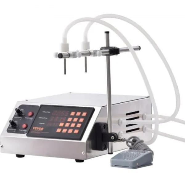 Denne automatiske væskepåfyldningsmaskine tilbyder præcis og effektiv påfyldning til et bredt udvalg af lav- til mellemviskose væsker, hvilket gør den ideel til små produktioner derhjemme eller i et værksted. Med digitale kontroller og uafhængigt betjente dobbeltdyser forenkler den betjeningen og øger produktiviteten. Fødevaregodkendte materialer og et let at rengøre design sikrer sikker og hygiejnisk brug til drikkevarer, mælk, vin, saucer og meget mere.