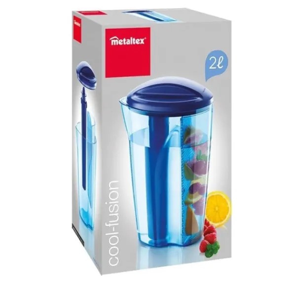 Metaltex Cool Infusionskande med infuser og filter. Fyld beholderen med vand, og stil den i fryseren. Dette kan derefter tilsættes kanden for at køle din drink af. Du kan smage din drink til ved at tilsætte frugt til filteret. Nem at rengøre i opvaskemaskinen. Mål: 10,5x16x28cm og en kapacitet på 2 liter.