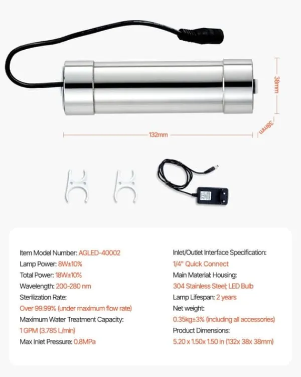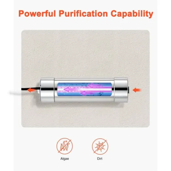 Stærk UV-vandrensning til hele husstanden Få krystalklart drikkevand med et kompakt UV-system, der steriliserer op til 99,99%. Det rustfri stålkammer øger UV-refleksionen for maksimal effektivitet, mens den stabile elektroniske ballast sikrer ensartet ydeevne. Ingen påvirkning af smag, farve, lugt eller pH – kun rent vand, hver dag.