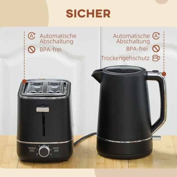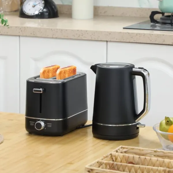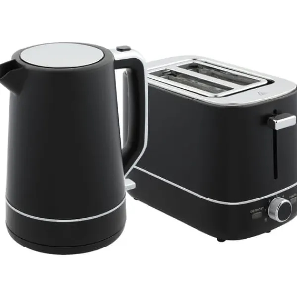 Start din morgen stilfuldt med dette elegante sorte kedel- og brødrister-sæt, der kombinerer moderne design med praktisk funktionalitet. Kedlen varmer vand hurtigt til flere kopper, mens brødristeren tilbyder alsidige funktioner inklusive varme, optøning og seks bruningstrin for at perfektionere din morgenmad.