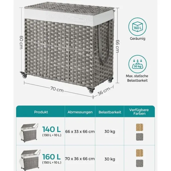 Denne vasketøjskurv vejer kun 5 kg og er let nok til at flytte rundt. Uanset om du tager den med til vaskerummet eller flytter den mellem rum, er den designet til bekvemmelighed.