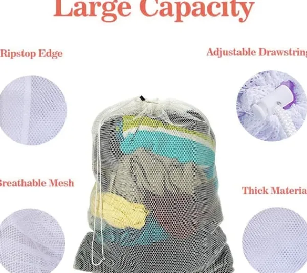 Stor vaskepose: Med sin størrelse på 60 x 90 cm giver denne vasketøjspose ekstra plads til masser af tøj og er også perfekt til større tøj som efterårs- og vinterjakker. Med en vaskepose forhindrer du, at dit tøj bliver unødigt slidt, når du vasker i maskinen.