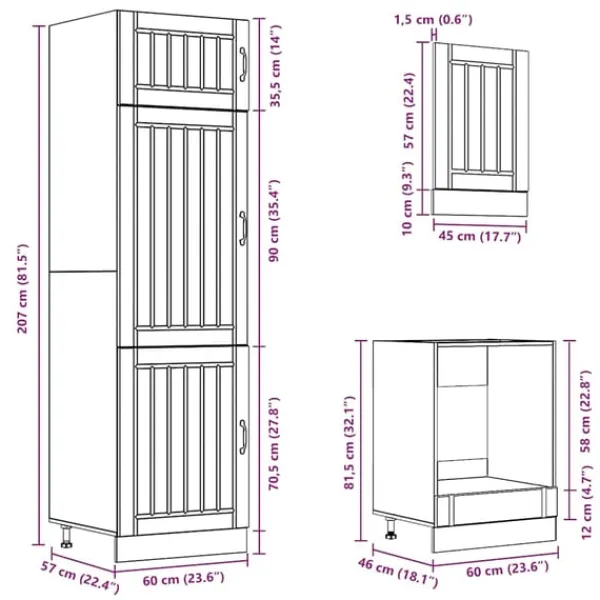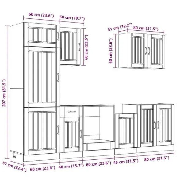 - 1 x Køkkenskab: 60 x 57 x 207 cm (B x D x H)