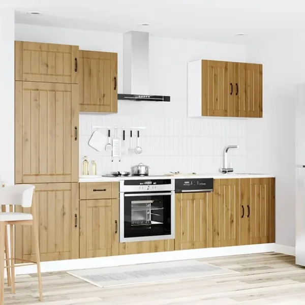 Dette køkkenskabssæt i 7 dele har et enkelt design, og de optimerer din køkkenplads og giver rigelig med opbevaringsplads til dit køkkenudstyr!