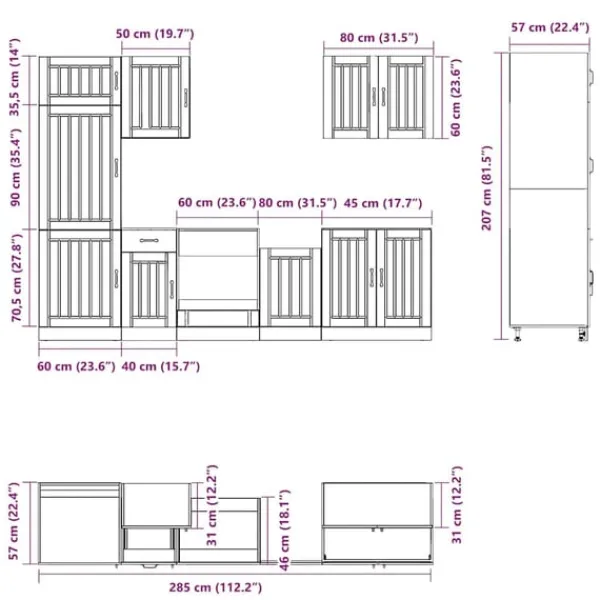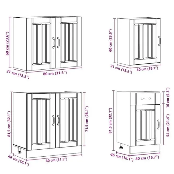 - Rigelig opbevaringsplads: Køkkenskabssættet har mange rum og giver tilstrækkelig plads til at opbevare skåle, tallerkener, gryder og andre køkkenredskaber.
