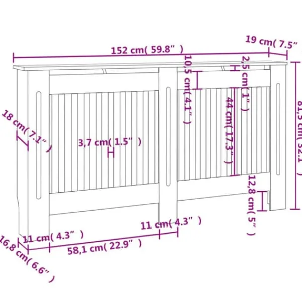 Det er designet til at give din radiator en dekorativ funktion og ekstra hyldeplads til billedrammer, bøger, pyntegenstande mv. Radiatorskjulerkabinettet er lavet af højkvalitets-MDF, så det er robust og holdbart. Kabinettet har et moderne lameldesign, der passer til enhver indretning, og er særdeles let at montere.