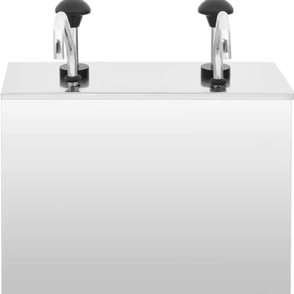 Denne dispenser med pumpe er lavet af rustfrit stålmateriale af høj kvalitet. Alle dele, der kommer i kontakt med fødevarer, er lavet af 304 rustfrit stål. Så denne dispenser ruster ikke hurtigt og er let at rengøre. Derudover kan denne dispenser med en stor kapacitet opbevare en tilstrækkelig mængde forskellige saucer såsom mayonnaise, ketchup, sojasovs osv. Du kan opbevare tilstrækkeligt med saucer med dens 2 x 3,5 l kapacitet.