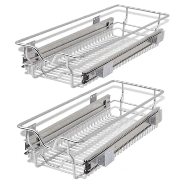 Optimér opbevaringspladsen i dit køkken med disse trådkurve af metal, som er nemme at montere. De vil være en alsidig tilføjelse til dine køkkenskabe.