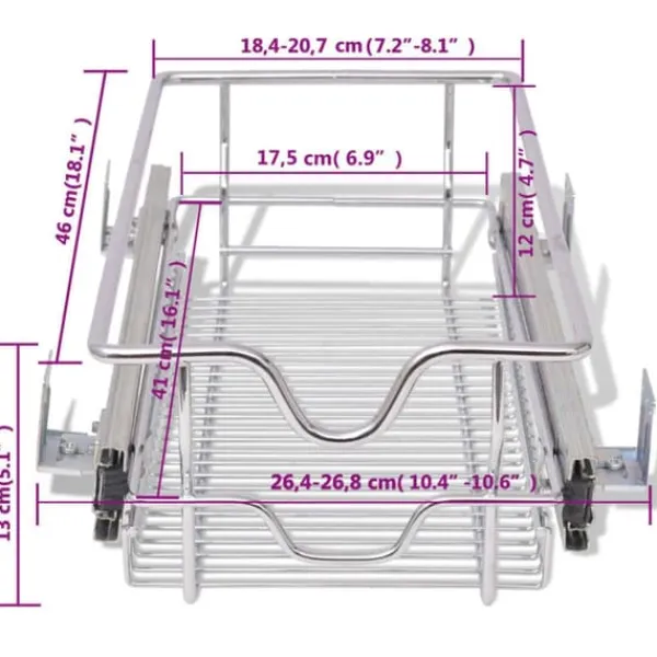 - Trådkurv, mål: (184-207) x 460 x 130 mm (B x D x H)