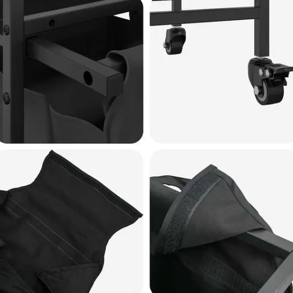 - Praktiske udtrækkelige vasketøjsposer: De aftagelige vasketøjsposer er designet med udtrækkelige håndtag og velcrolukning, så de nemt kan tages af og trækkes ud. De forstærkede bundpaneler hjælper med at bevare posernes form og forhindrer, at de hænger.