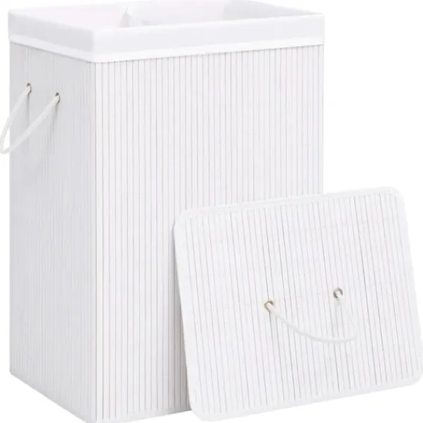 Den indvendige foring er lavet af vævet stof, som ikke absorberer fugt eller lugt. Det er også udtageligt, så du nemt kan transportere dit vasketøj til maskinen. Den store volumen giver dig nok plads til at organisere og opbevare tøj. Da den har et håndtag kan den nemt flyttes rundt. Bambusvasketøjskurven kan skilles ad og foldes sammen for nem opbevaring. Det er en perfekt løsning til organisering i stuen, badeværelset og soveværelset. Derudover kan den multifunktionelle vasketøjskurv også bruges til opbevaring af børnenes legetøj.