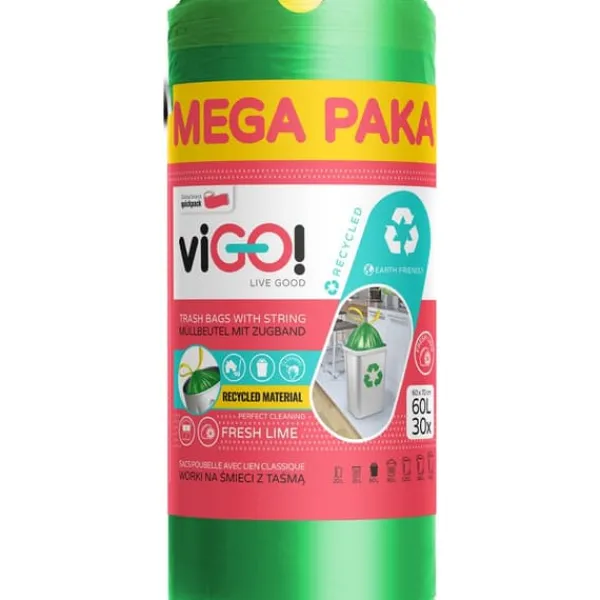 En stor pakke holder længere. viGO! Eco LD-poser med snøre er lavet af 100% genbrugsplast*. De er fremstillet ved hjælp af en ny 3-lags præget folieteknologi, der muliggør produktion af tyndere og lettere poser, der også er meget stærkere og mere fleksible med øget modstandsdygtighed over for stræk og slid. Folien, der anvendes i dem, er genanvendelig. De er nemme at bruge og miljøvenlige. De passer perfekt ind i nye trends, hvor farver og dufte i stigende grad ikke kun opfattes som en ekstra fordel, men også er eftertragtede funktioner, der bestemmer produktkøbsbeslutninger: blå med lavendelduft og grøn med limeduft. Snoren, der bruges i lukkesystemet, muliggør fuld udnyttelse af posens kapacitet og dens tætte lukning. Poser med et unikt interleave-system. Dette giver dig mulighed for blot at rulle én pose ud ad gangen uden at skulle adskille dem.