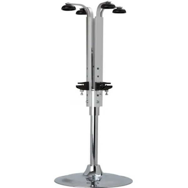 Bordstativ til 4 flasker Anvendelsesstedet kan hurtigt ændres – du forbliver fleksibel! Uden 4 doseringsanordninger / portioners (plast) 2cl. •Bred base og solid konstruktion sikrer et sikkert stativ•Ingen boring nødvendig i disken•Velegnet til 0,7-1,0 l flasker•I sølv