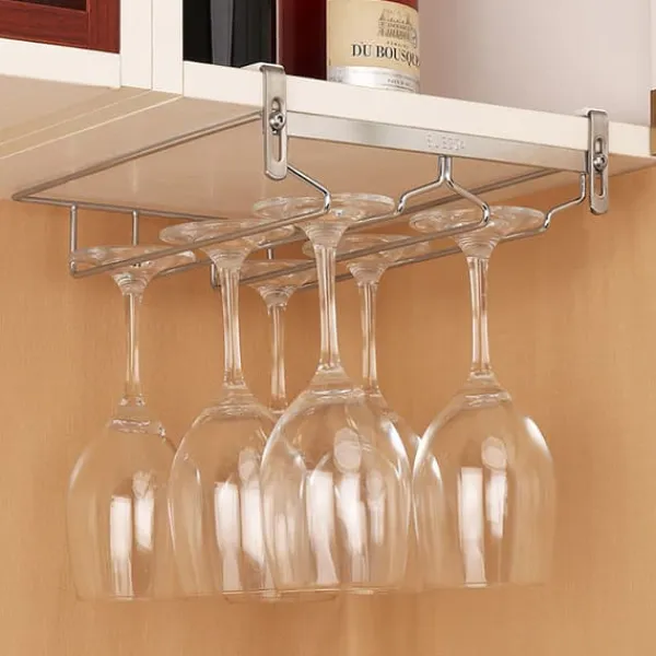 Ved at hænge glassene under en hylde frigøres bordplads og skabsplads. Desuden giver designet i rustfrit stål et elegant, moderne look.