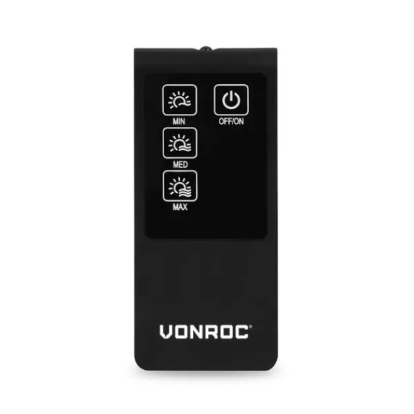 Du kan nemt tænde og slukke for din VONROC-varmer Vesuvio med denne praktiske fjernbetjening. Med denne fjernbetjening er det også muligt at skifte mellem de tre varmeniveauer på Vesuvio-varmeren. Fjernbetjeningen fungerer med 2 AAA-batterier, bemærk venligst: batterier medfølger ikke.