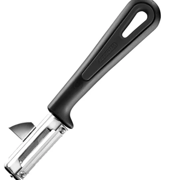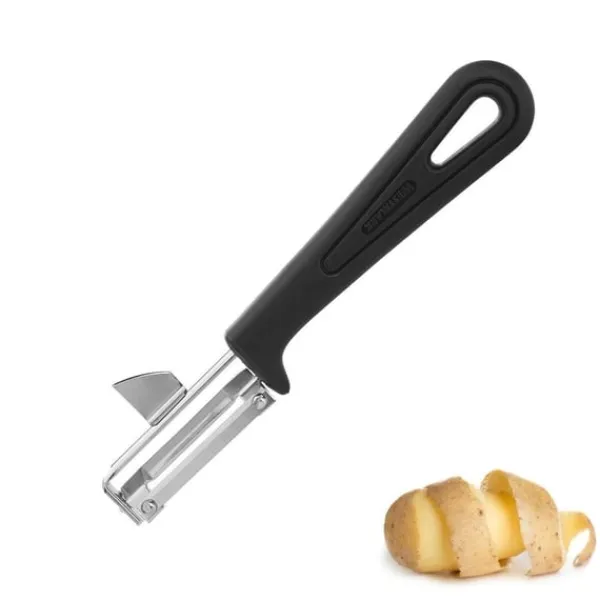 Westmark drejeskræller til runde eller aflange grøntsager og frugter såsom kartofler, agurker, asparges og æbler. Denne skræller har et knivskarpt blad og en knivbeskyttelse. Skræl effektivt takket være det bevægelige blad, der automatisk tilpasser sig madens form. Farve: sort.