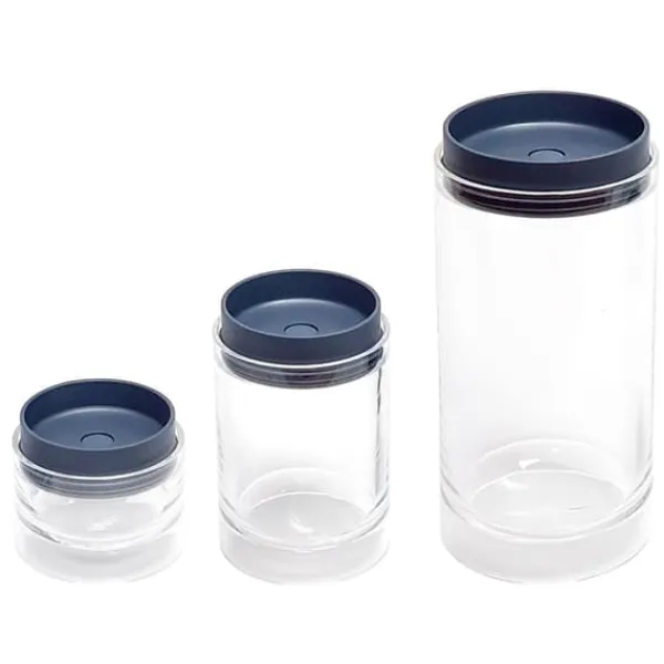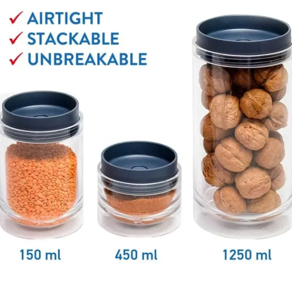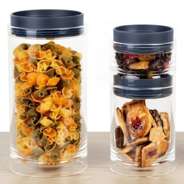 Opbevaring af for eksempel müsli, mel eller sukker i tæt forseglede beholdere er ikke kun en måde at tilføje et mere personligt præg på dit køkken, det er også en fremragende måde at spare plads på og forlænge produkternes holdbarhed. Du kan stable disse tre beholdere oven på hinanden, de to mindre beholdere kan endda opbevares i den større beholder, når de ikke bruges. De er lavet i stærk akryl, hvilket betyder, at du ikke behøver at bekymre dig om, at de går i stykker, hvis de falder på gulvet.